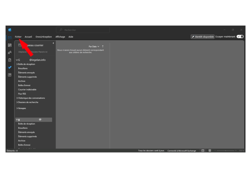 - Pour cela, il vous suffit d’aller dans votre Outlook et ensuite d’aller dans l’onglet « Fichier »