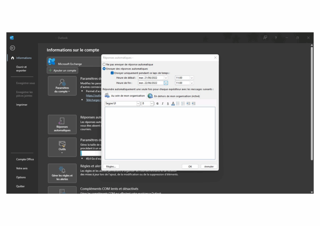 Outlook – Réponse automatique en cas d’absence / vacances